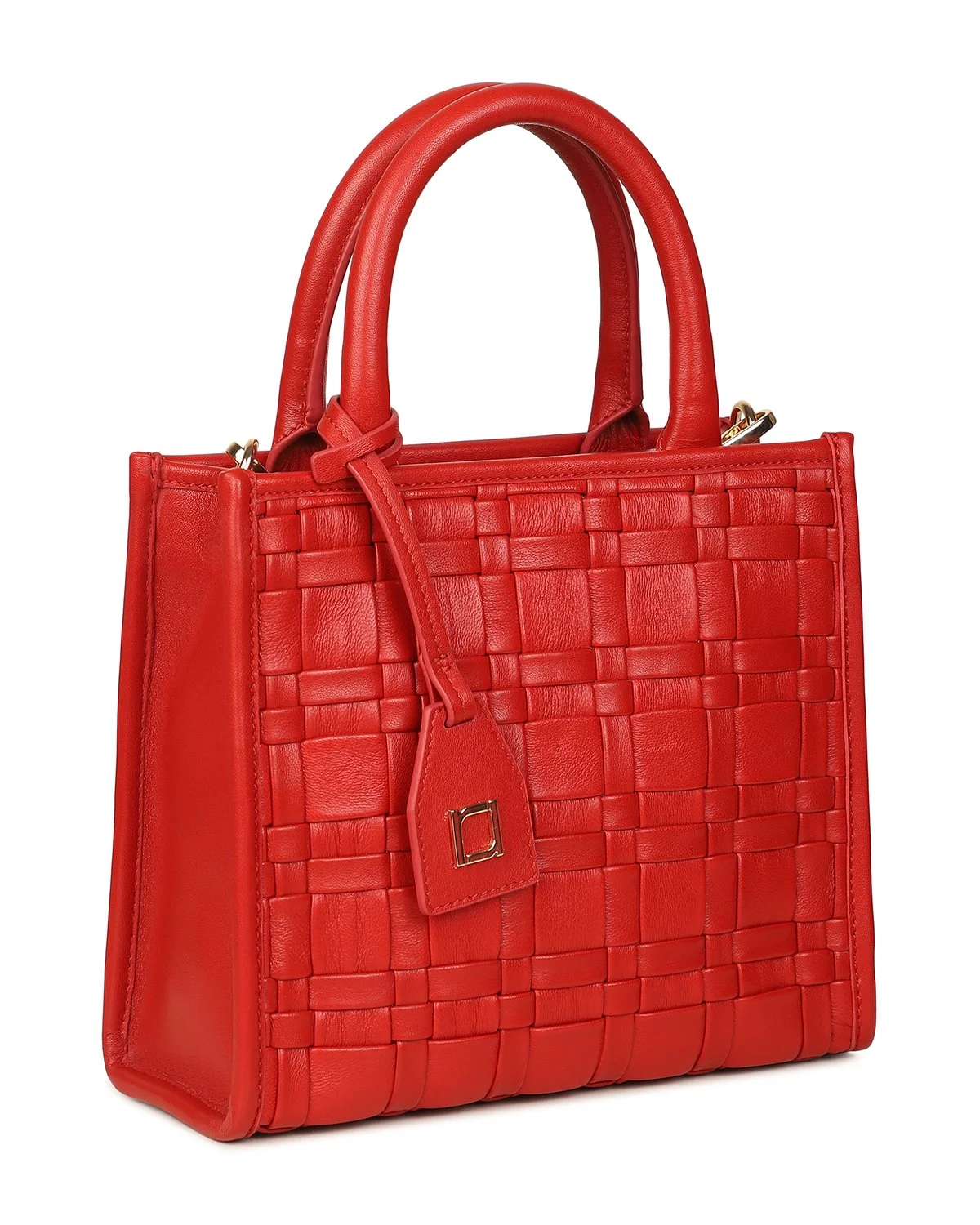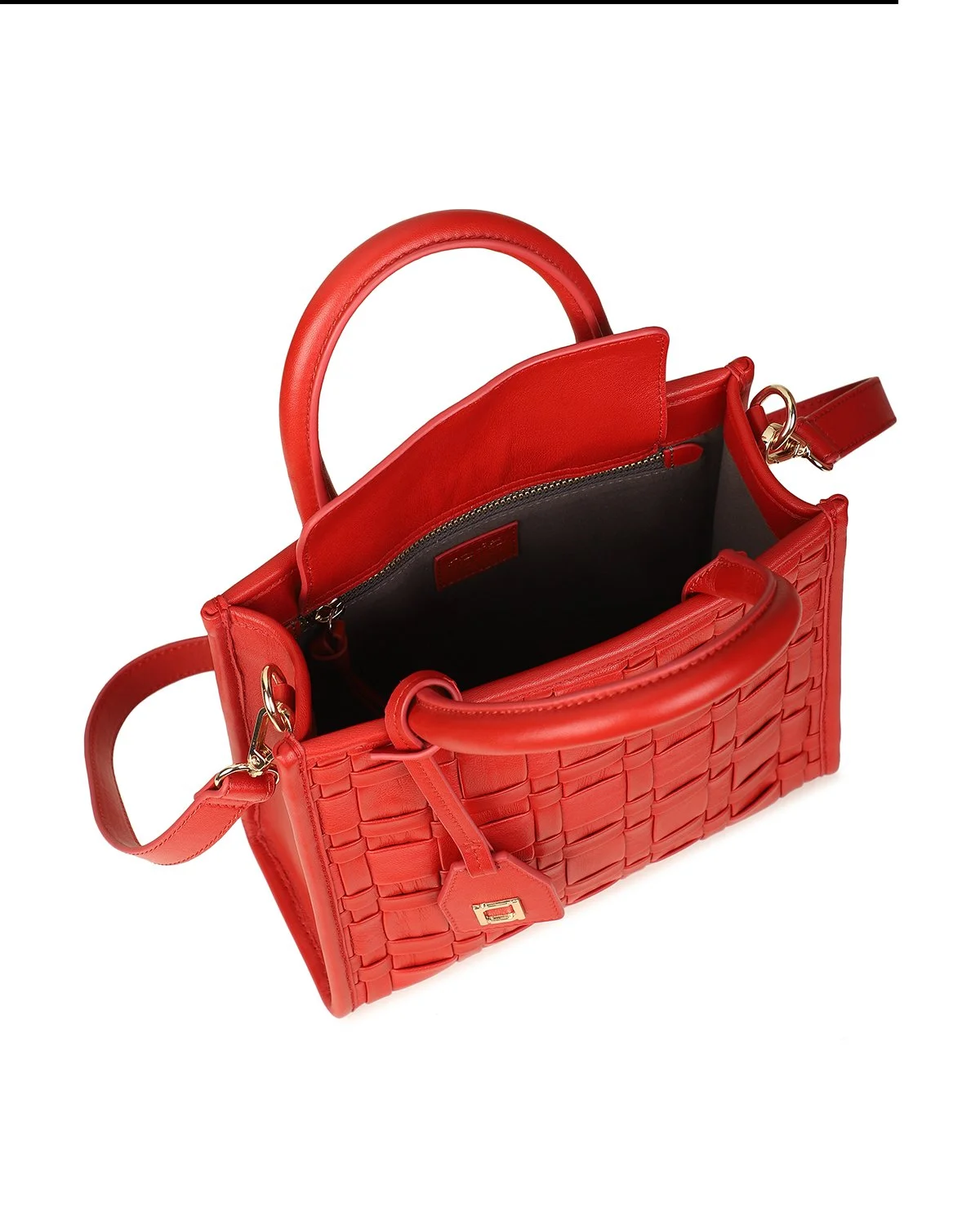 The KAYA small tote crossbody is a new style this season. Crafted from hand-woven wine leather with a lined interior, inside pockets and a magnetic snap closure. This tote will easily become your favorite bag this season.