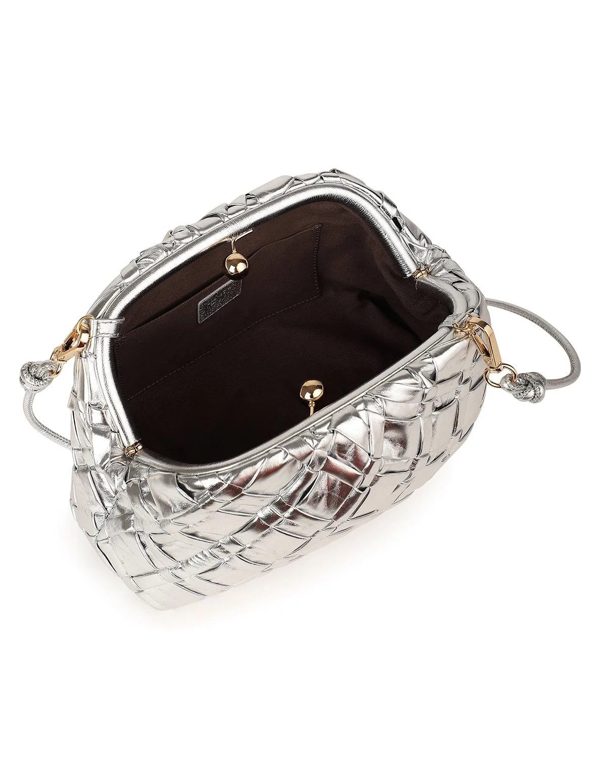 The MARGARITA tote is a timeless style with an artisanal twist. Crafted from hand-woven leather dyed in a rich wine color with wide shoulder straps that taper towards the top and held together with a snap. It is fully lined with an inside pocket and a magnetic snap closure. The tote is capacious and easily goes from the beach to the city.